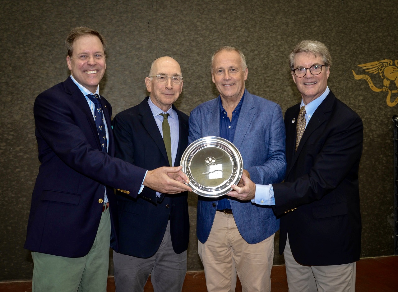 During the World Championship Challenge in Newport, the USCTA gave the 2025 Plimpton Prize to Timothy Edwards. He is the world’s leading tennis photographer. For nearly twenty years, Edwards has taken stunning action photographs of court tennis. Based in London, he has shot every Challenge starting in 2014, as well as seventeen British Opens and numerous other local, national and international tournaments. “The lasting images of our game in the past two decades will have come from Tim’s camera,” said Jim Zug, during an awards ceremony at a tournament dinner in the Horseshoe at the International Tennis Hall of Fame.